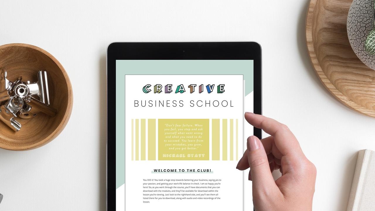- Downloadable videos, worksheets, guides, audio files, written transcripts, the Creative Business Blueprint, and more