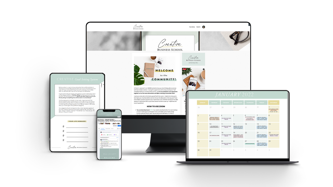 - Downloadable videos, worksheets, guides, audio files, written transcripts, the Creative Business Blueprint, and more